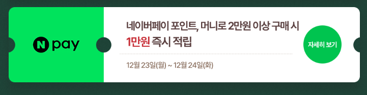 혜택 : 네이버 포인트,머니로 2만원 이상 결제시 최대50%할인