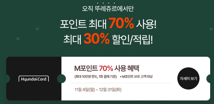 기간 : 12월18일(수), 12월25일(수) 최대 30% 할인 또는 적립