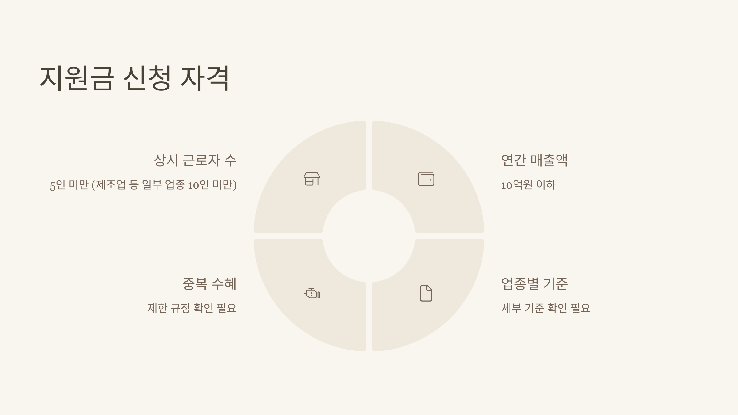 소상공인 지원금을 신청하려면 아래의 기본 요건을 충족해야 합니다.