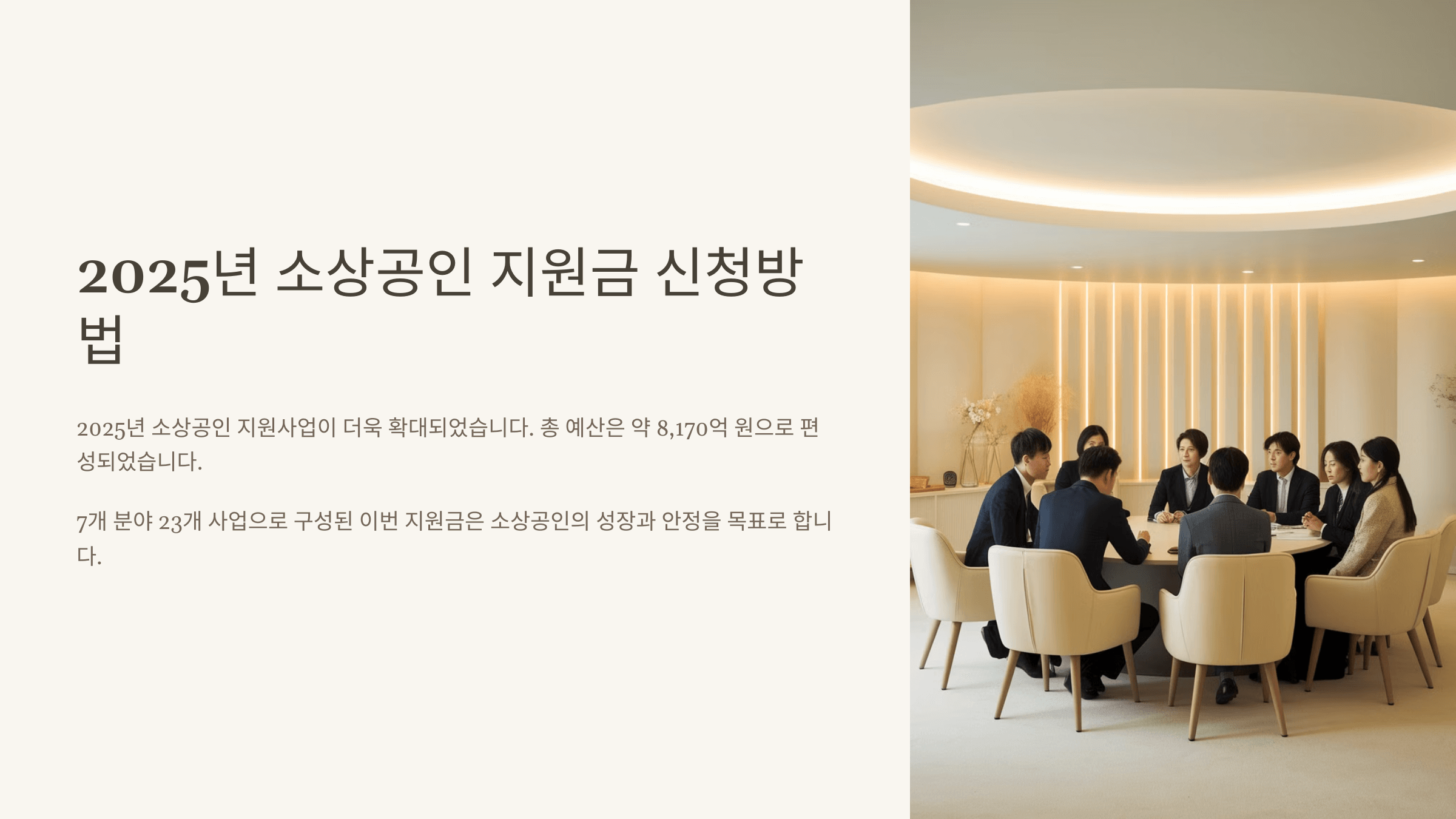 2025년 소상공인 지원금은 정부와 지자체가 경제 활성화와 소상공인의 경영 안정을 위해 마련한 다양한 지원 프로그램입니다. 이번 글에서는 지원금 종류, 신청방법, 방법, 필요 서류, 주의사항 등을 구체적으로 안내합니다. 이 가이드를 통해 소상공인 여러분이 적합한 지원금을 놓치지 않고 신청할 수 있길 바랍니다.