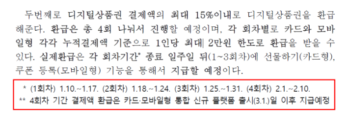 위 기간마다 합산 14만원을 사용하면 회차마다 2만원씩 환급됩니다.