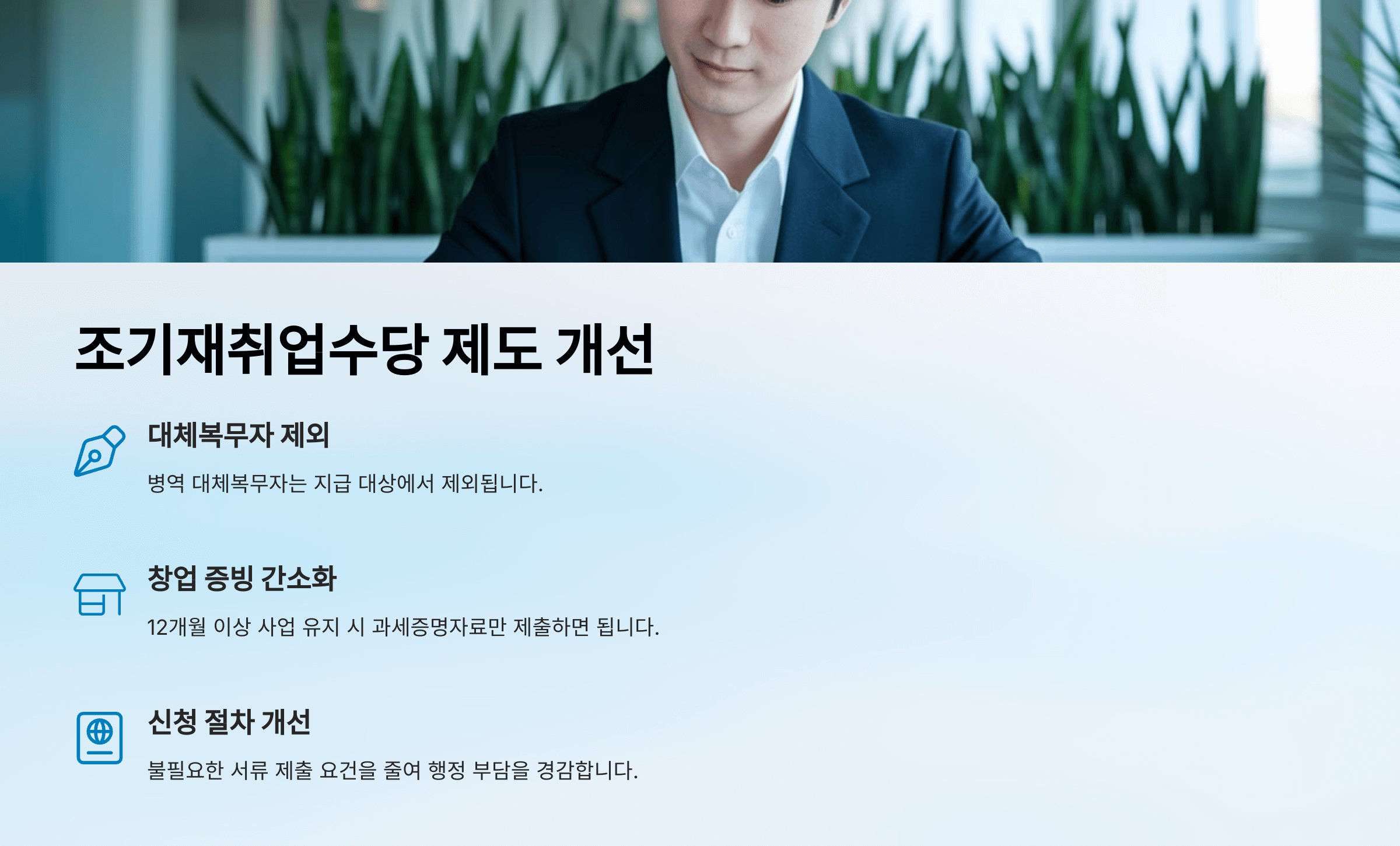 - 조기재취업수당 지급 절차 간소화로 행정 부담 완화