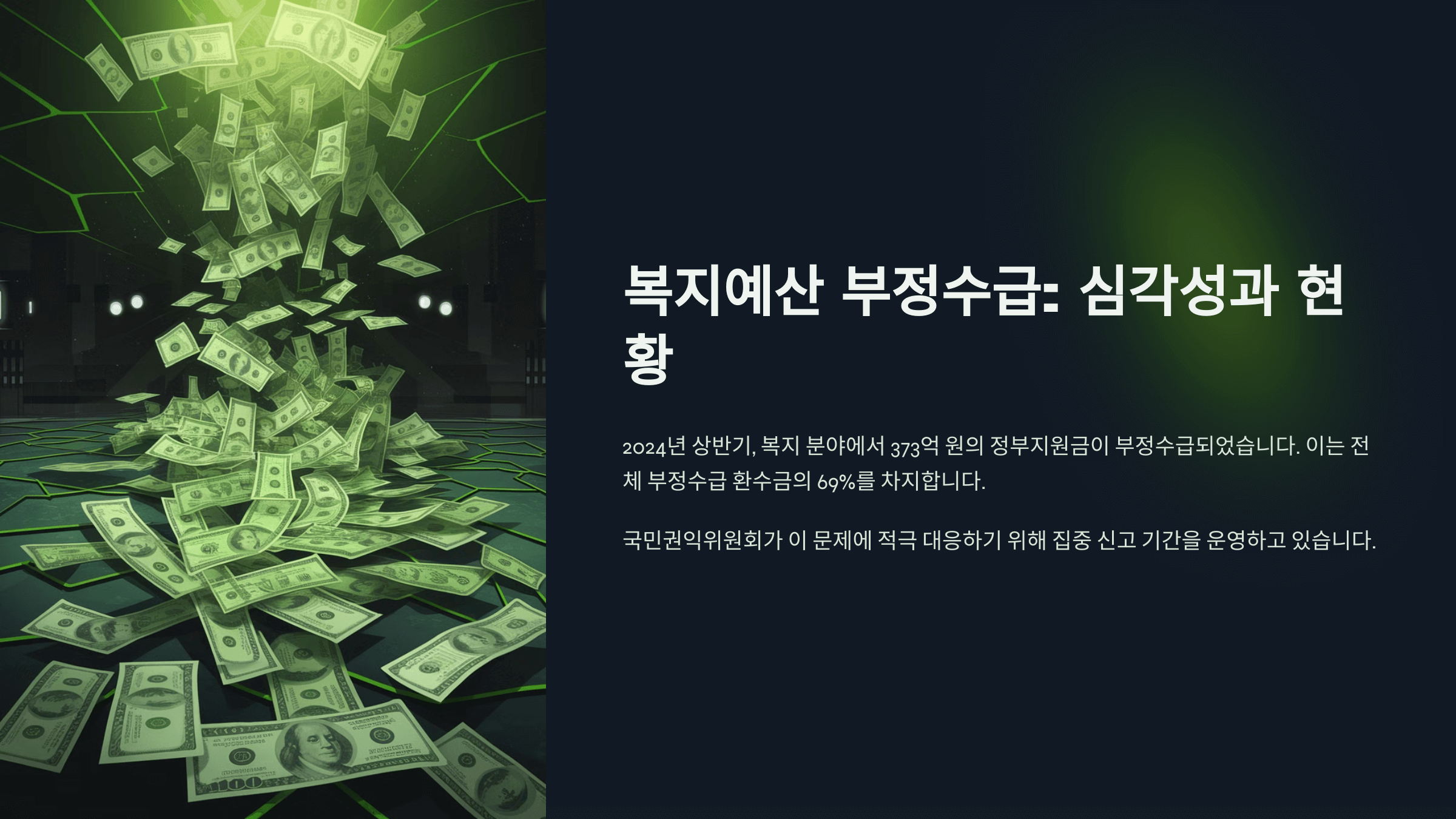 복지예산 부정수급, 2024년 상반기만 373억 원…정부지원금 중 최대