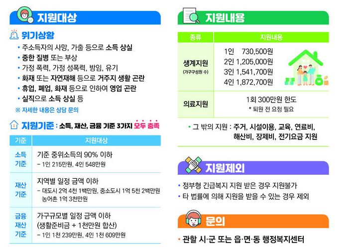 희망지원금 신청 지원대상, 지원내용실직·사망·질병, 위기가구