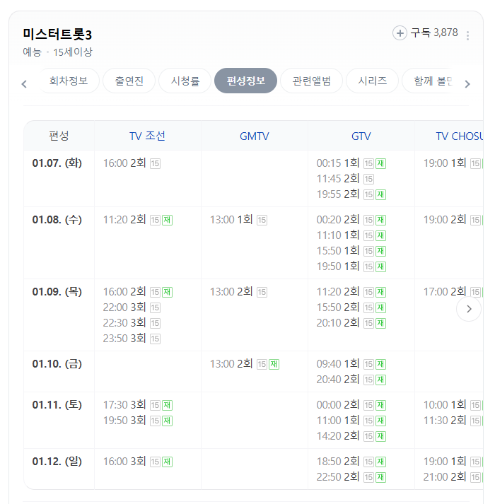 미스터트롯3 편성표,재방송시간, 방송다시보기